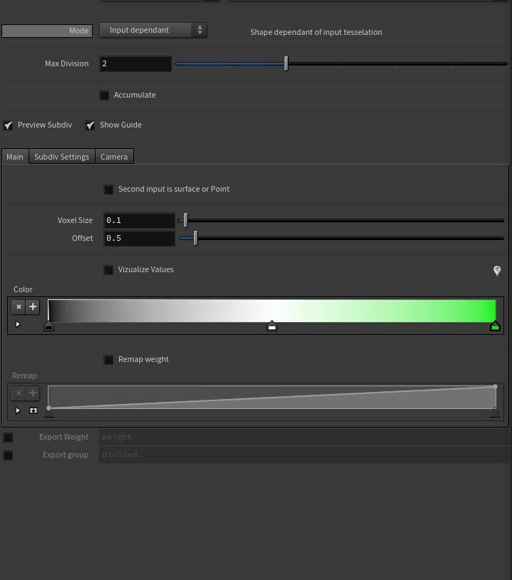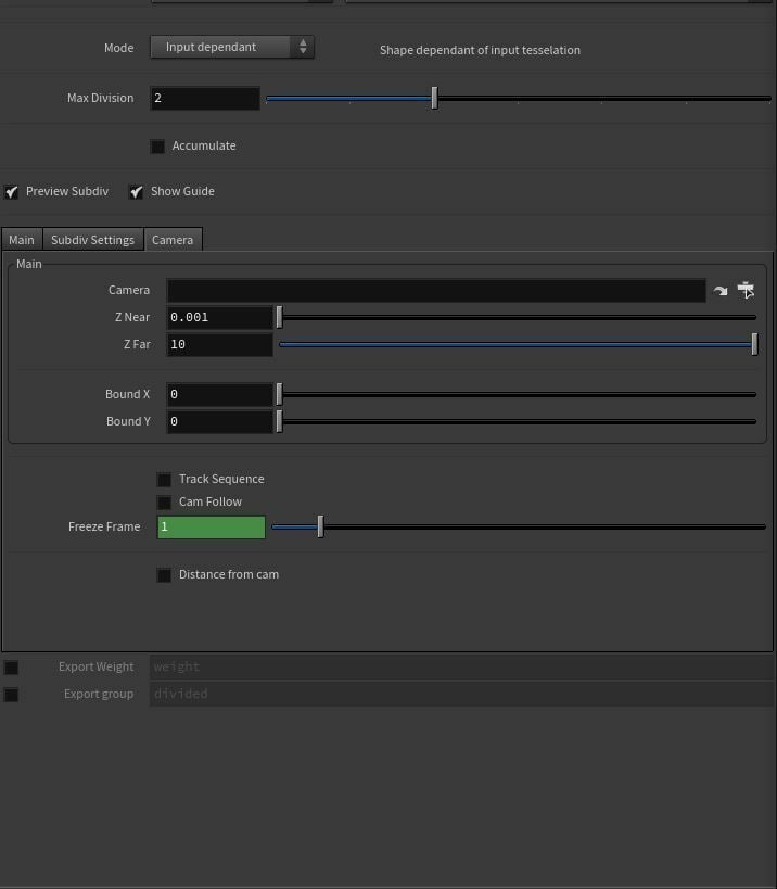 AdaptSubdiv is a SOP HDA that adaptively subdivides geometry based on a guide or a camera.